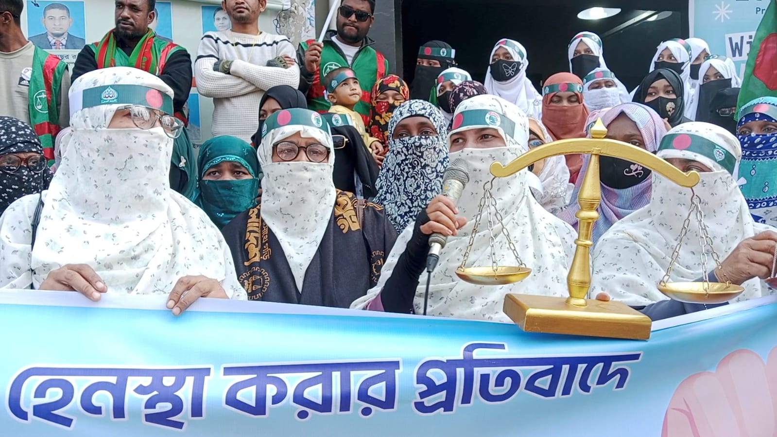 নারী হেনস্থার প্রতিবাদে বাগেরহাটে মহিলা জামায়াতের বিক্ষোভ মিছিল